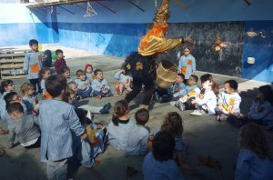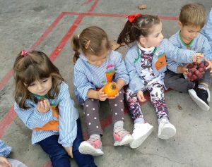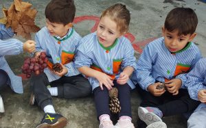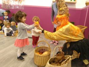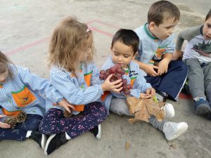 Com un fibl贸 va omplir l’escola de fulles, amb l’atenta mirada dels m茅s petits fins als m茅s grans. Ens va dur una panera plena de fruites d’aquesta estaci贸 i v脿rem poder con猫ixer de ben aprop fruites com les magranes, codonys, garroves, caquis…